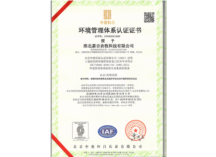 環(huán)境管理體系認證書